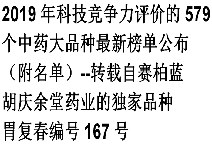 2019年科技竞争力评价的579个中药大品种最新榜单公布(附名单)--转载自赛柏蓝(pa集团药业的独家品种胃复…